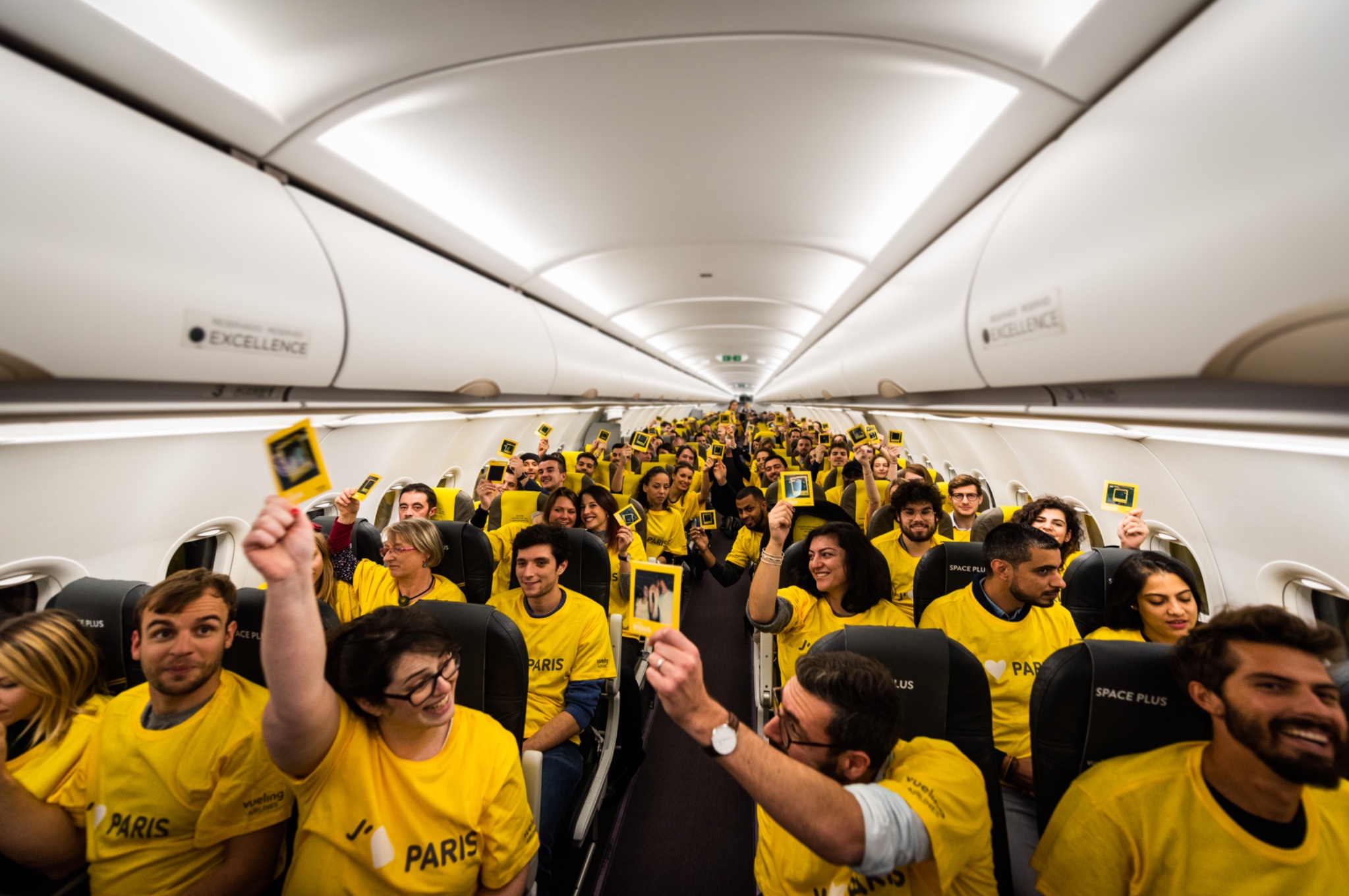 Le coppie vincitrici del concorso sono partite con un volo gratuito da Parigi Orly a Barcellona, principale hub della compagnia aerea. Le coppie sono state invitate a esprimere il loro amore per Parigi scambiandosi un bacio mentre l’aereo raggiungeva la sua altitudine massima. Vueling ha lanciato quest’iniziativa proprio per dichiarare il suo amore per i clienti parigini.