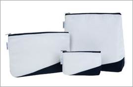 Entrambi i brand hanno scelto un design sobrio e minimalista, per valorizzare il tessuto originale, la tela bianca leggermente satinata che copriva i sedili delle cabine Concorde. Un tocco di blu richiama i profili che ne decoravano le stoviglie. Una seconda vita 100% sostenibile per questi iconici interni delle cabine creati dal designer Andrée Putman nel 1992.