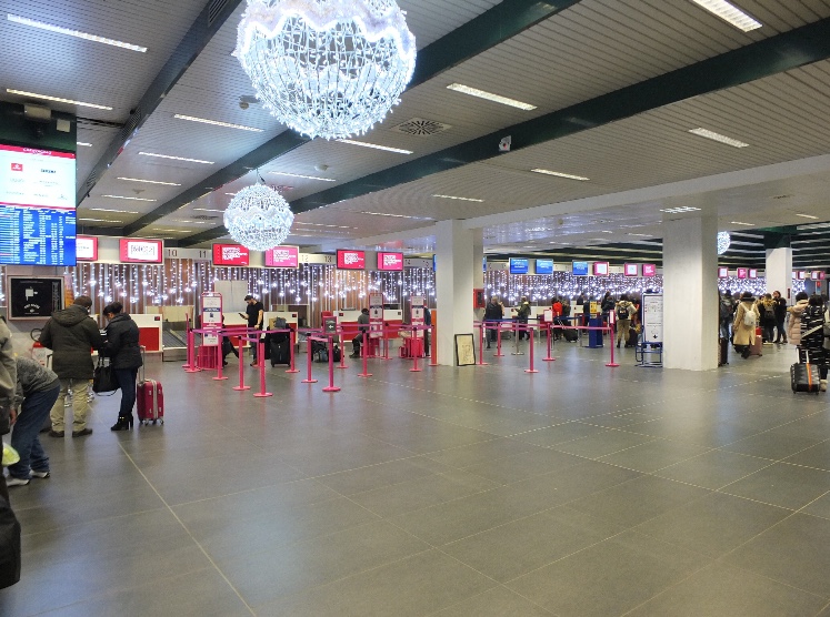 Sono in funzione 33 banchi check-in, di cui 4 postazioni dedicate alla