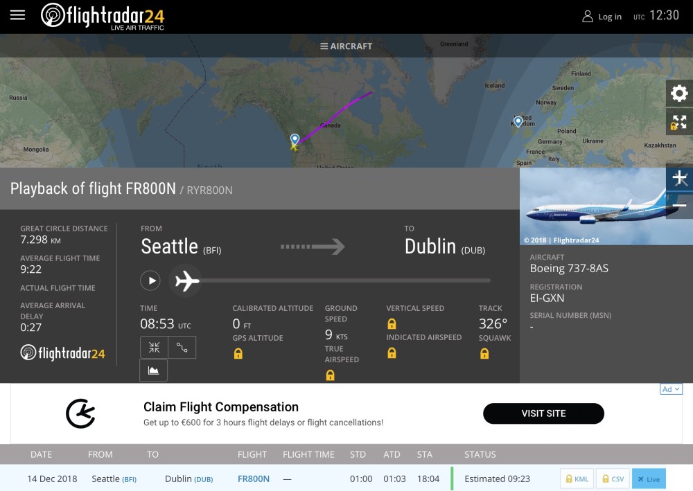 Con una flotta globale di oltre 450 aerei del tipo B737/800, la Ryanair oggi sta prendendo in consegna l’ultimo B737/800NG nuovo di zecca. E’ EI-GXN che sta volando in questo momento come FR800N da Seattle Boeing Field a Dublino. I prossimi saranno i B737MAX200, dei quali alcuni sono già in assemblaggio, la consegna e’ prevista in gennaio 2019.