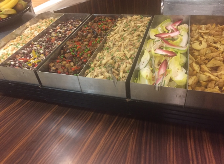 Nella giornata di ieri siamo transitati attorno a mezzogiorno alla KLM Crown Lounge di Amsterdam area Schenghen. E’ posta al mezzanino tra il Pier C e D. Molto larga ha due aree per eventuali spuntini, ecco come vengono presentate le pietanze, non di certo al livello per un luogo esclusivo quale una Business Lounge.