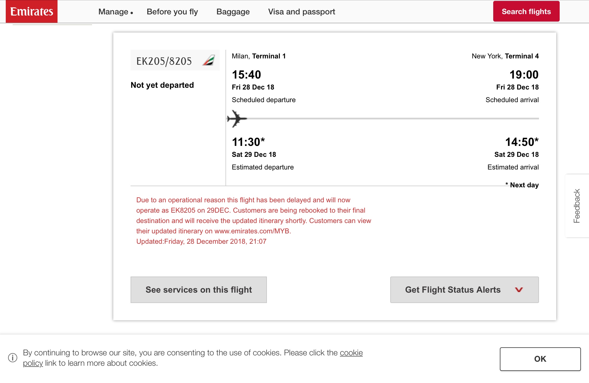 La rotazione di oggi del volo Emirates da Milano Malpensa a New York JFK EK205 e’ stata cancellata a causa di un indisposizione di uno dei piloti. I passeggeri sono stati inviati in alberghi della zona. L’aereo A380-800 A6-EDT ripartirà domani come EK8205.
