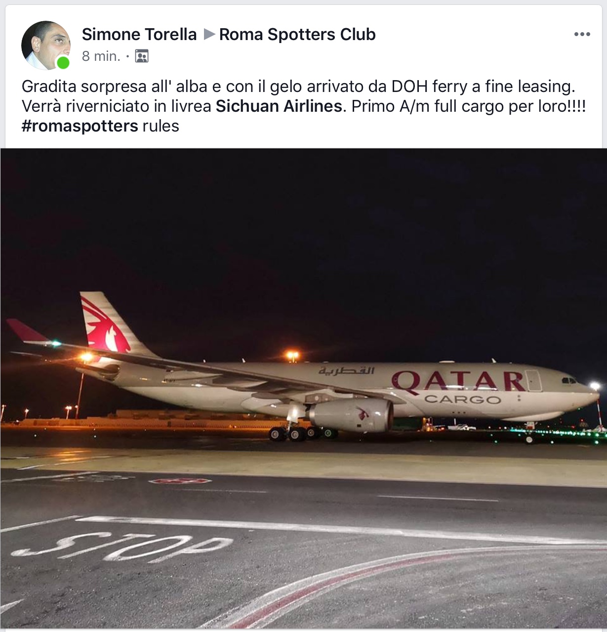 compagnie aeree, rotte Sichuan si prende un A330 freighter da Qatar Airways Pubblicato da Italiavola il 3 gennaio 2019 Questo aereo della Qatar Airways a breve andrà alla Sichuan Airlines. Come da didascalia e’ giunto da poche ore a Roma. Condividi: Fai clic per condividere su Facebook (Si apre in una nuova finestra) Facebook Fai clic qui per condividere su LinkedIn (Si apre in una nuova finestra) LinkedIn Fai clic qui per condividere su Reddit (Si apre in una nuova finestra) Reddit Fai clic qui per condividere su Pinterest (Si apre in una nuova finestra) Pinterest Fai clic qui per condividere su Tumblr (Si apre in una nuova finestra) Tumblr Fai clic per condividere su X (Si apre in una nuova finestra) X Mi piace Caricamento... Correlati