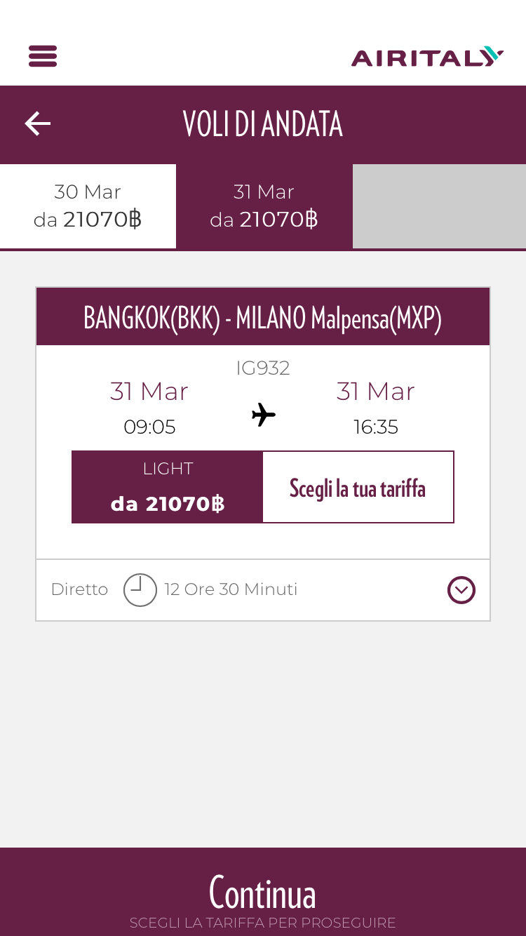 Come si nota dagli screenshot l’ultima partenza e’ il 30 marzo e successivo ritorno il 31 marzo.