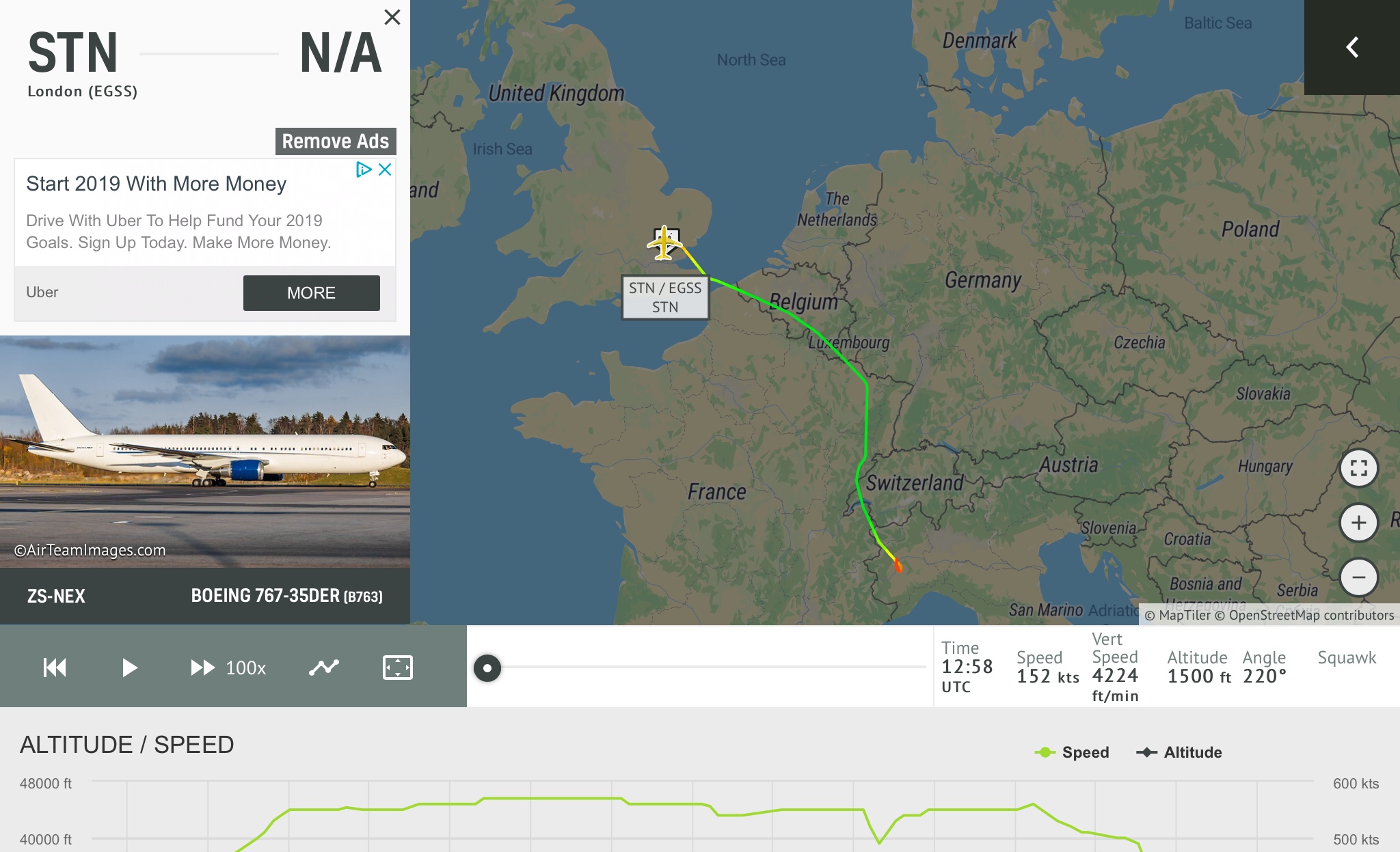 Questo pomeriggio con il codice ARN218 si e’ spostato ferry questo B767-35D ER ZS-NEX della sudafricana Aeronexus da Londra Stansted a Torino.