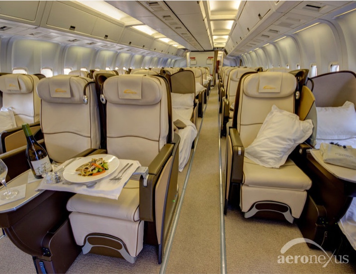 Il B767/35D ER ZS-NEX ha un interno composto da 96 poltrone con possibilità di essere lie flat per il maggior comfort. Il pitch e’ generosissimo 73 pollici in file di 6 poltrone. L’aereo e’ dotato di un sistema Wi-Fi per seguire i contenuti dal vostro tablet o computer. Ovviamente ha prese di corrente. In un ambiente posteriore vi e’ anche la possibilità di dormire in un letto. Aeronexus può volare in ogni dove. Ha equipaggi di 3/4 piloti, ingegnere di volo ed 8 assistenti di volo. I curatissimi servizi sono a misura di quello che i clienti chiedono.
