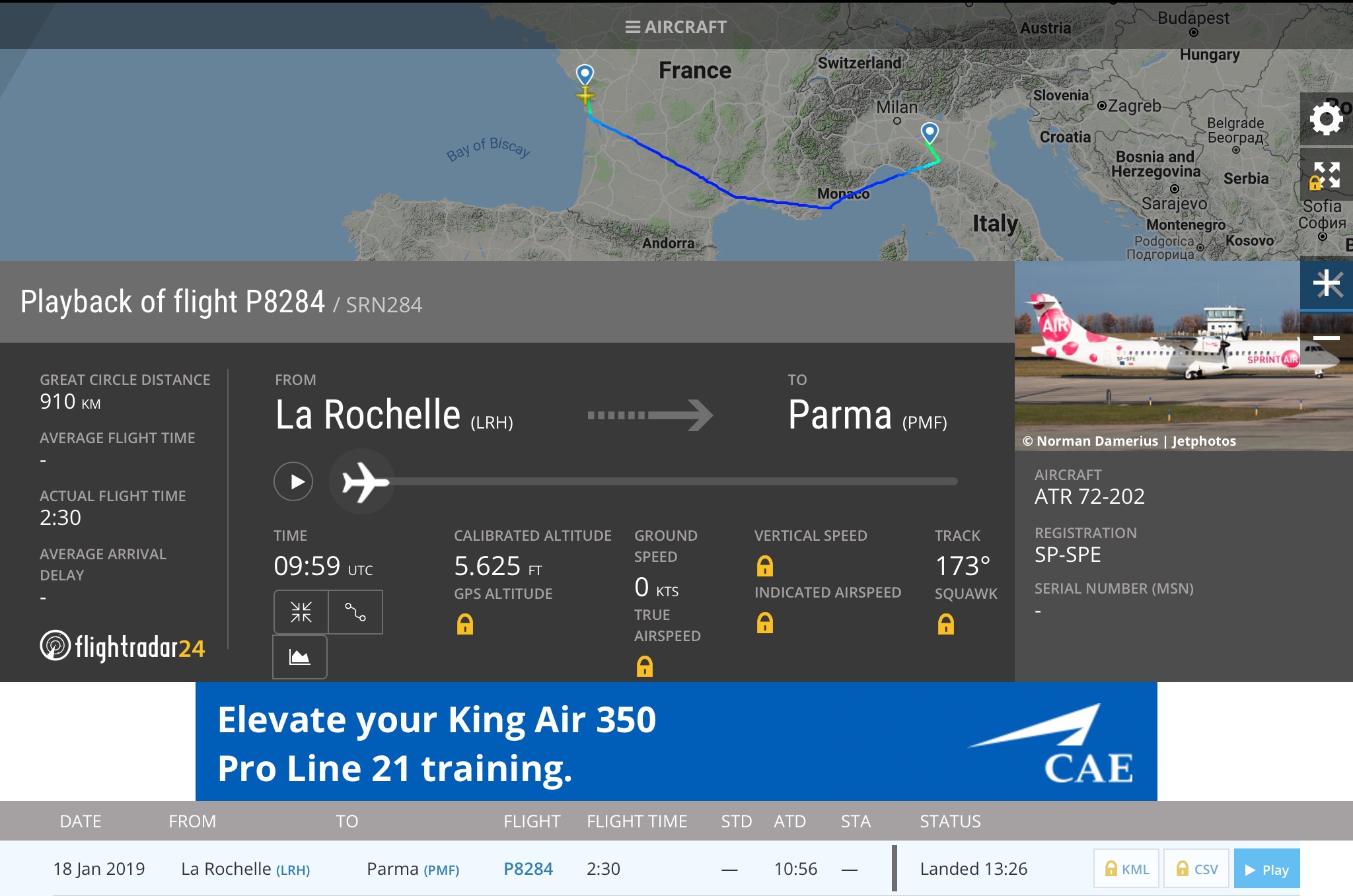 compagnie aeree Sprintair charter passeggeri da La Rochelle a Parma Pubblicato da Italiavola il 18 gennaio 2019 Quest’oggi il volo P8 284 ha operato questo volo charter passeggeri da La Rochelle in Francia con destinazione Parma. L’aereo, un ATR72/200 SP-SPE ha trasportato un team sportivo. Il velivolo e’ in layover sull’aeroporto parmigiano. Condividi: Fai clic per condividere su Facebook (Si apre in una nuova finestra) Facebook Fai clic qui per condividere su LinkedIn (Si apre in una nuova finestra) LinkedIn Fai clic qui per condividere su Reddit (Si apre in una nuova finestra) Reddit Fai clic qui per condividere su Pinterest (Si apre in una nuova finestra) Pinterest Fai clic qui per condividere su Tumblr (Si apre in una nuova finestra) Tumblr Fai clic per condividere su X (Si apre in una nuova finestra) X Mi piace Caricamento... Correlati