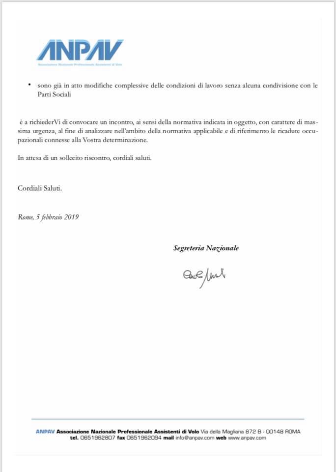 Nel foglio di ANPAV, leggibile nella pagina Facebook dell’orgazzazione Sindacale , si apprende chiaramente la situazione venuta a crearsi per le 120 risorse impiegate sul corto raggio da Roma in essere fino a fine marzo quando la base verrà chiusa.
