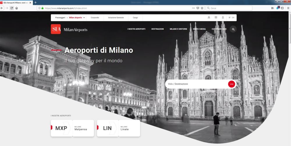 Milano, 8 febbraio 2019 – È online il nuovo portale di SEA, la società che gestisce gli scali di Milano Linate e Milano Malpensa: http://www.milanairports.com