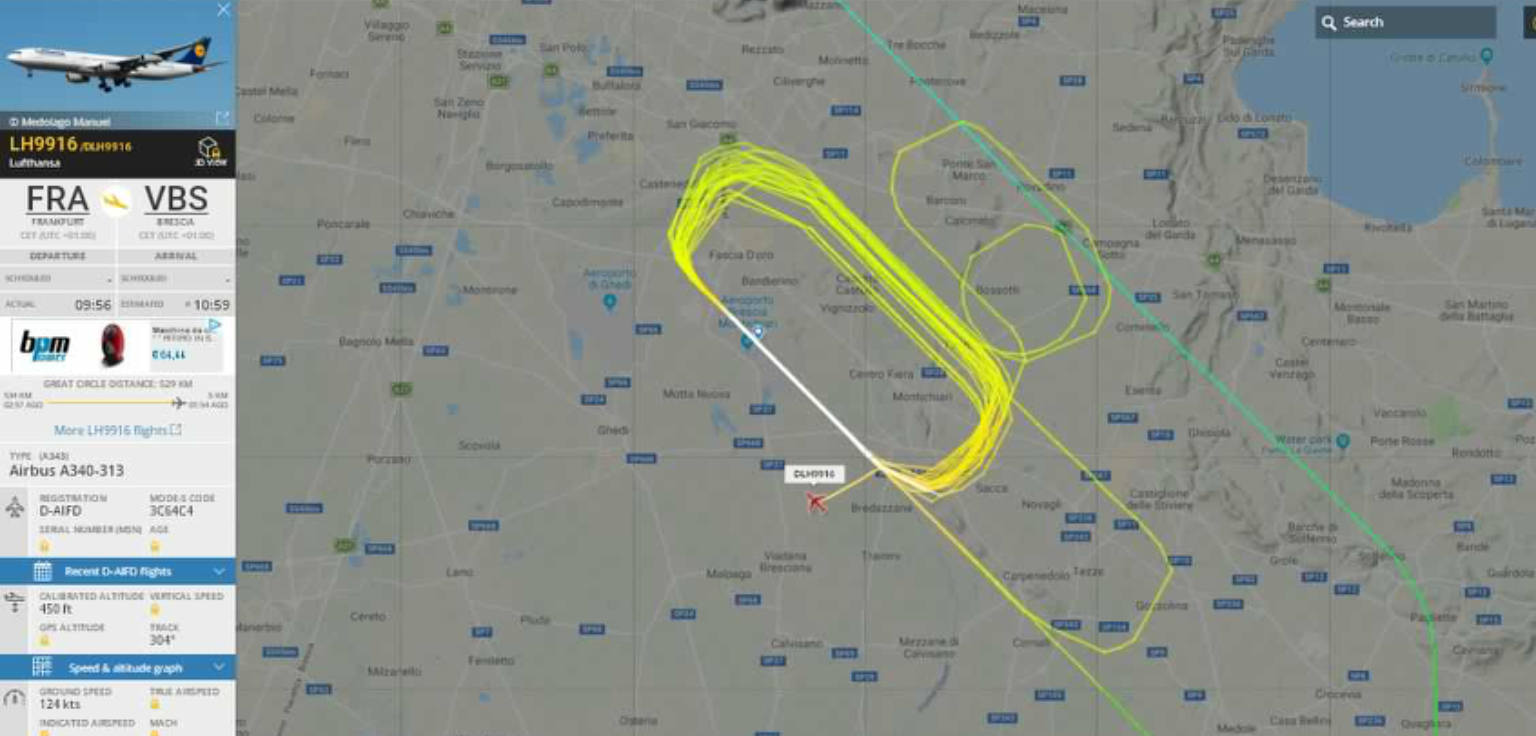 Ieri la Lufthansa ha inviato a Brescia un A340-300 per le consuete attività di training. L’aereo e’ arrivato in mattinata da Francoforte come LH9916 ed ha effettuato continui circuiti con avvicinamenti seguiti da riattaccate. Poi ha compiuto un atterraggio ed e’ ripartito come LH9917, a seguire altri consueti avvicinamenti e go around. L’aereo in serata ha poi proseguito per Francoforte, aveva le marche D-AIFD.