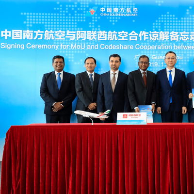 Dubai, Emirati Arabi Uniti e Guangzhou, Cina, 5 febbraio 2019 – Emirates e la China Southern Airlines (codice IATA: CZ) hanno firmato un “Memorandum of Understanding” raggiungendo così un reciproco e vantaggioso accordo di codeshare, che prevede per i viaggiatori di entrambe le compagnie l’apertura di nuove destinazioni tra la Cina, il Medio Oriente e l’Africa. La partnership con la compagnia cinese, con sede a Guangzhou, consente inoltre ai passeggeri di Emirates di usufruire di una collegamenti senza scali sui voli nazionali all’interno della Cina, aggiungendo otto nuove destinazioni alla sua rete globale. Le città cinesi facenti parte dall’accordo di codeshare durante la fase iniziale della partnership comprendono: Fuzhou, Chongqing, Kunming, Qingdao, Xiamen, Chengdu, Nanjing e Xi ‘an, fatte salve le necessarie approvazioni governative.