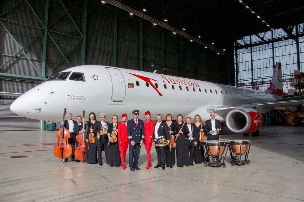 With waltzes in the luggage through Europe: Vienna Johann Strauss Orchestra takes over the patronage of an Austrian Airlines Embraer jet