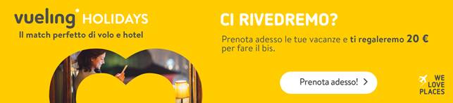 Milano, 27 febbraio 2019 – Con la promozione Vueling Holidays, cresce la voglia di viaggiare! Fino al 30 giugno 2019 coloro che prenotano un pacchetto vacanza – incluso volo e hotel attraverso il canale Vueling Holidays – riceveranno un voucher di € 20 a passeggero, da riscattare sull’acquisto del volo successivo su www.vueling.com.