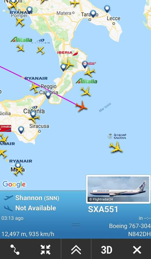L’aereo e’ l’ex EI-FMR fino a poco tempo fa con Air Italy. SXA e’ il triletterale di Southern Cross Aviation, azienda specializzata anche nel trasferimento di velivoli.