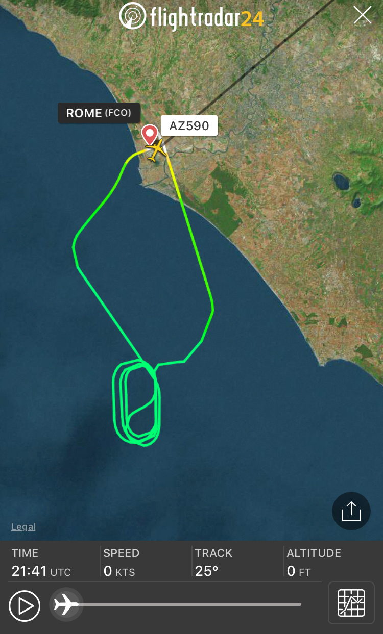 Il Roma – Kiev del 11/3/2019 volo AZ590 e’ rientrato a Roma Fiumicino dopo una quarantina di minuti di volo.