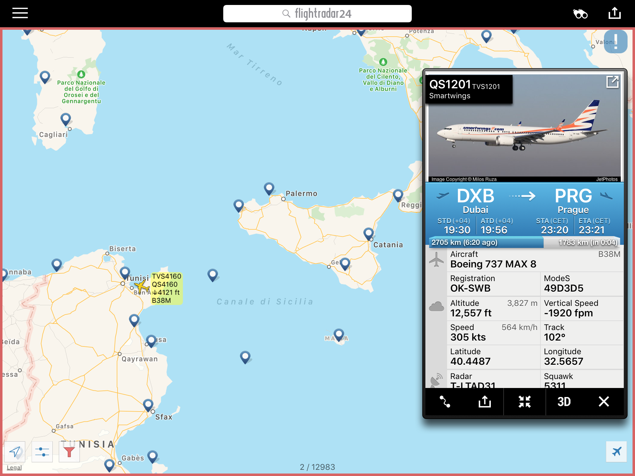 A seguire, quello partito da Sal a Capo Verde, che verso l’Europa si e’ fatto buona parte del Mediterraneo, fermandosi ad est di Malta. Qui ha fatto svariate holding senza esito, A Malta non hanno concesso l’atterraggio, poi ha messo prua ovest per Tunisi dove e’ atterrato.