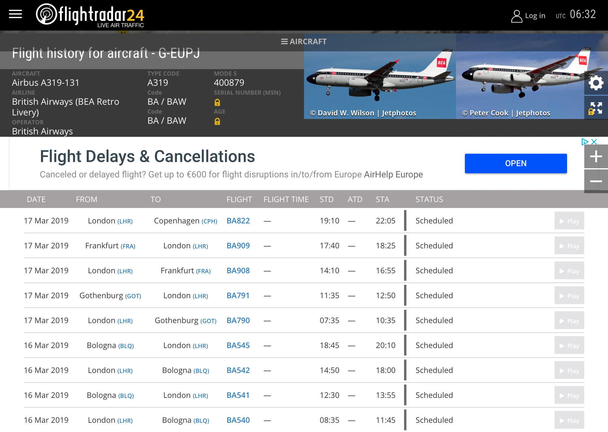 Sia sul volo che arriva poco prima di mezzogiorno, che sul successivo al tardo pomeriggio a Bologna ci sarà il BEA retro A319/100 della British Airways.