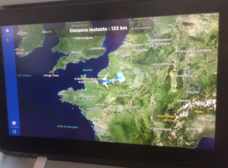 Il volo predisposto dopo il decollo da Parigi Aeroporto Charles De Gaulle ha puntato sulla Normandia, la Bretagna poi la costa fino a Bordeaux e la foce della Gironda. Quindi Montpellier, Marsiglia, Tolone, Hyeres e parte della Costa Azzurra, La Provenza le Alpi orientali e poi di nuovo verso Parigi.