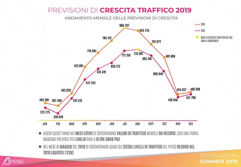 Palermo, 27 marzo 2019 – Sarà un anno da record per l’aeroporto di Palermo Falcone Borsellino. E già in due dei primi tre mesi dell’anno Il 2019 la crescita dei passeggeri e dei voli ha raggiunto la doppia cifra. Se a gennaio i viaggiatori erano il 6,5% in più, a febbraio sono passati a +11,2%, mentre a marzo (il dato è al 24 marzo) la crescita ha toccato il 13% rispetto al 2018. Sull’anno si è oltre il 10% di crescita passeggeri e l’8,6% di voli. Sulle prime 15 compagnie aeree che volano da Palermo 13 hanno avuto incremento di traffico, mentre le rotte più battute sono: Londra, Bruxelles, Parigi, Düsseldorf e Memmingen. Con questi numeri, lo scalo palermitano è pronto a regalarci una stagione estiva con 107 destinazioni. Inoltre, mantiene il primato di scalo aeroportuale siciliano con la maggiore crescita percentuale di passeggeri (nel 2018 è stato il secondo aeroporto italiano per crescita percentuale di passeggeri – fonte Assaeroporti; il terzo in Europa fra gli scali da 5 a 10 milioni di passeggeri all’anno – fonte Aci Europe).