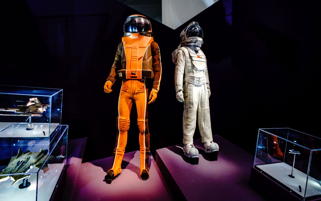 - Odissea nello spazio Space Odysseys – la più grande sezione della mostra – copre ciò che è considerata l’Età d’Oro della fantascienza. Questa sezione esplora le storie più comunemente associate alla fantascienza: il cosmo, i viaggi spaziali e gli incontri con gli alieni.