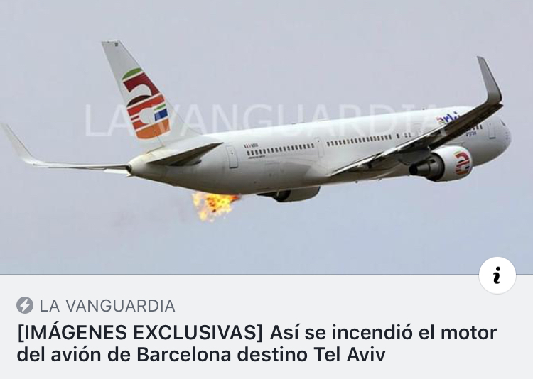 L’aereo, come si vede ha avuto un problema in decollo al motore sinistro, che ha poi spinto l’equipaggio ad effettuare ritorno a Barcellona.