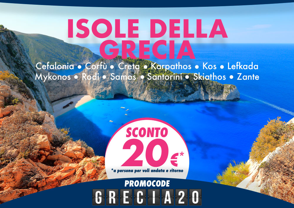 La Grecia in sconto di 20€ a persona in andata e ritorno. Questa è la proposta di Blue Panorama con il promocode GRECIA20.