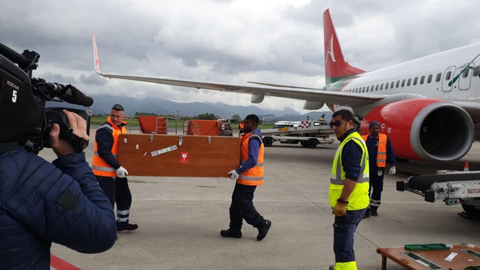 Il volo LAV/AP3436 operato dal Boeing 737/8K5 EC-MUB “Pino D’Urso” e’ atterrato alle 10:48 con questo particolare carico proveniente dalla Cattedrale di Notre Dame de Lourdes.