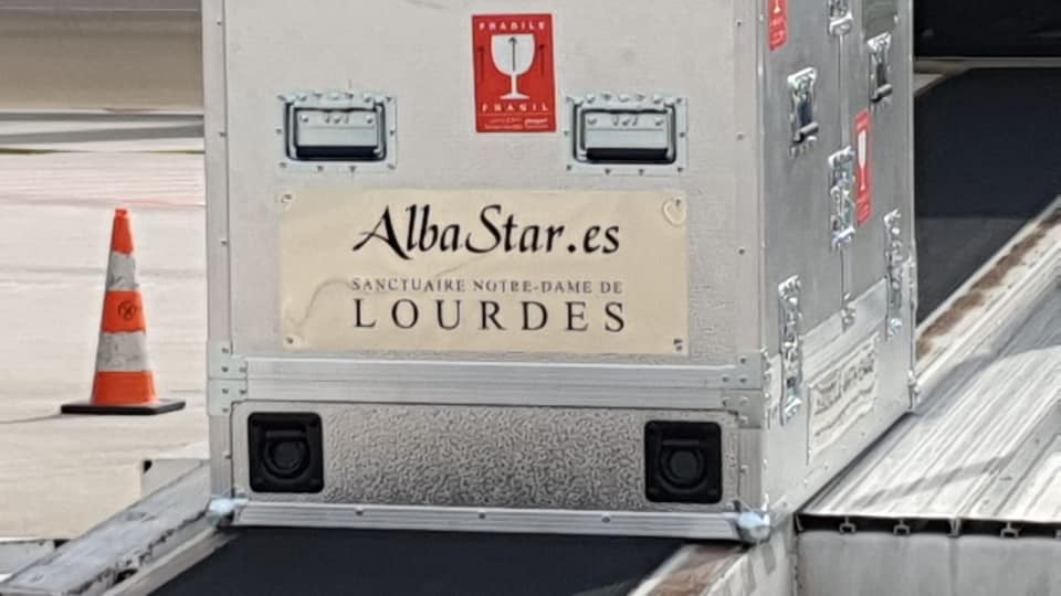 Questa mattina nelle stive del volo #Lourdes – #Bergamo della #AlbaStar c’era un carico speciale, le #il reliquie di Santa Bernadette da Lourdes.