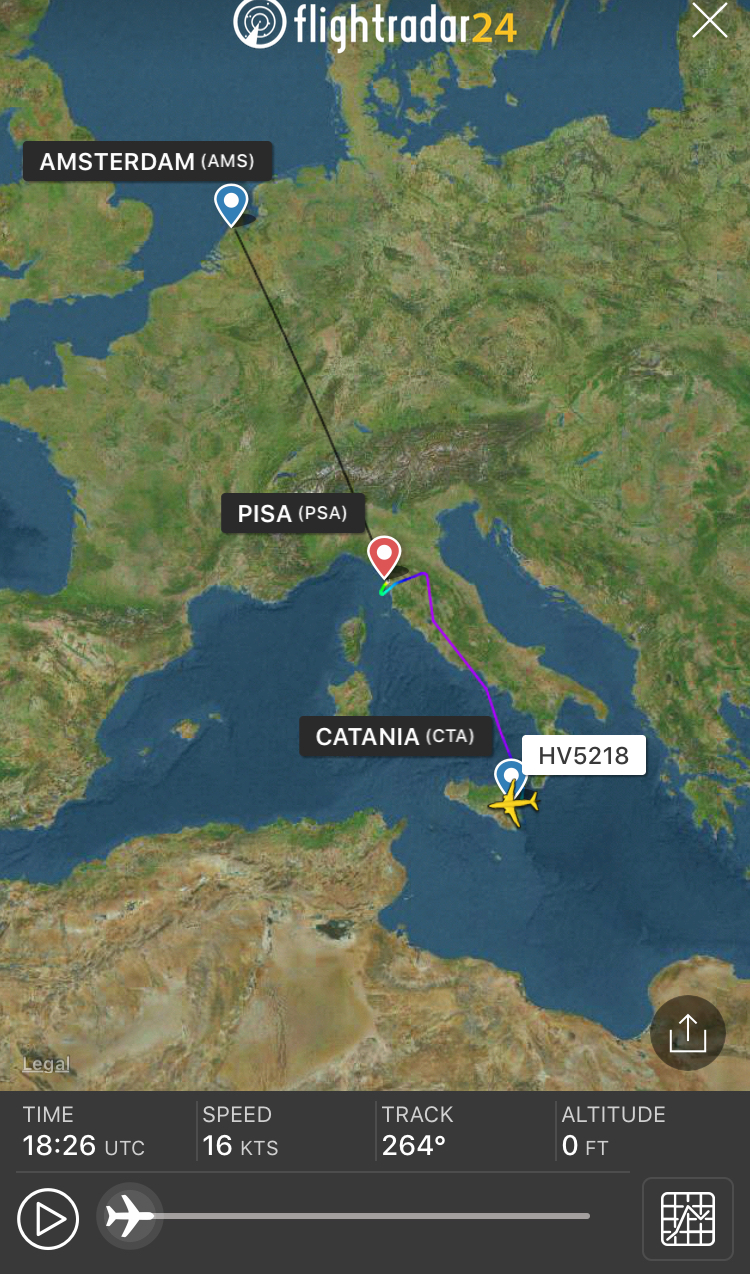 Ieri sera sul volo HV5218 un passeggero olandese di 72 anni ha avuto un infarto. Il volo Catania – Amsterdam e’ atterrato a Pisa, dove il 118 ha riscontrato la morte del viaggiatore.