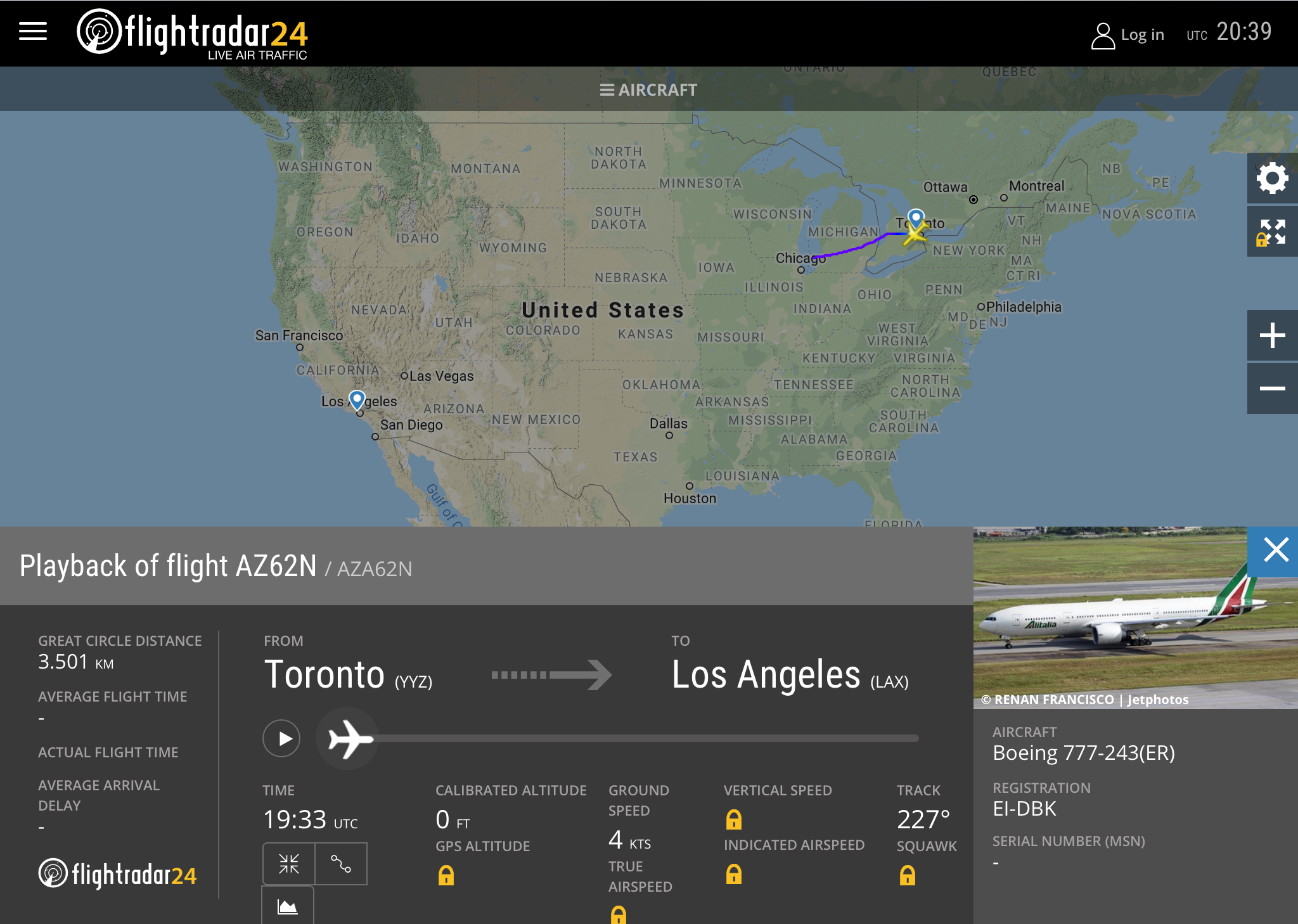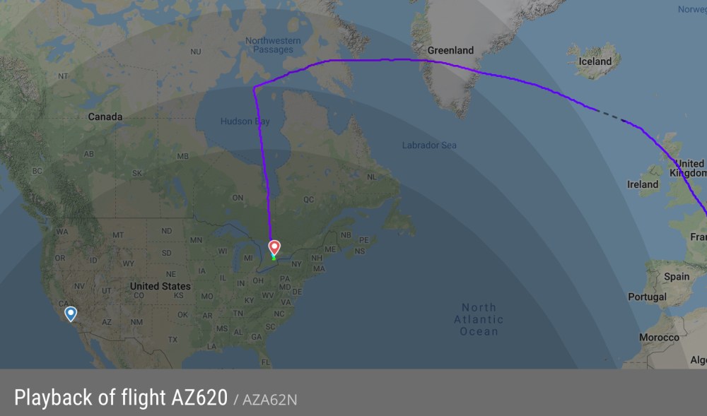 Un atterraggio fuori programma a Toronto per un B777-243ER Alitalia. Il volo AZ620 da Roma Fiumicino a Los Angeles e’ stato forzato ad un inversione di rotta verso l’aeroporto più vicino.