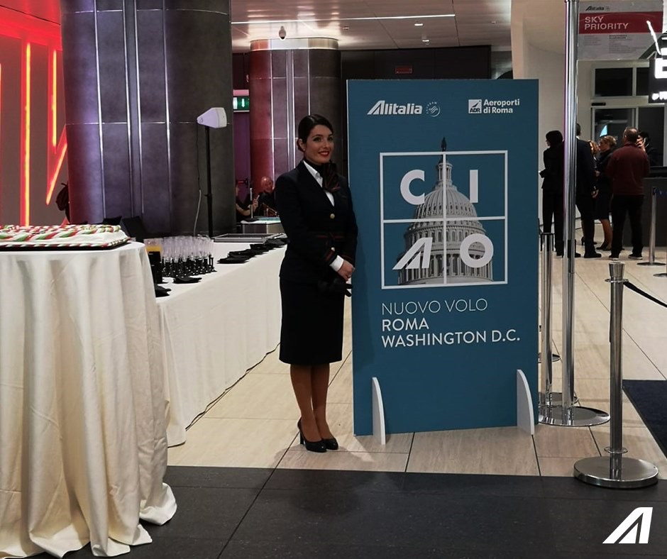 “Ciao” con la cupola del The Capitol, la sede del Congresso americano e’ la matrice pubblicitaria per l’apertura della nuova rotta.