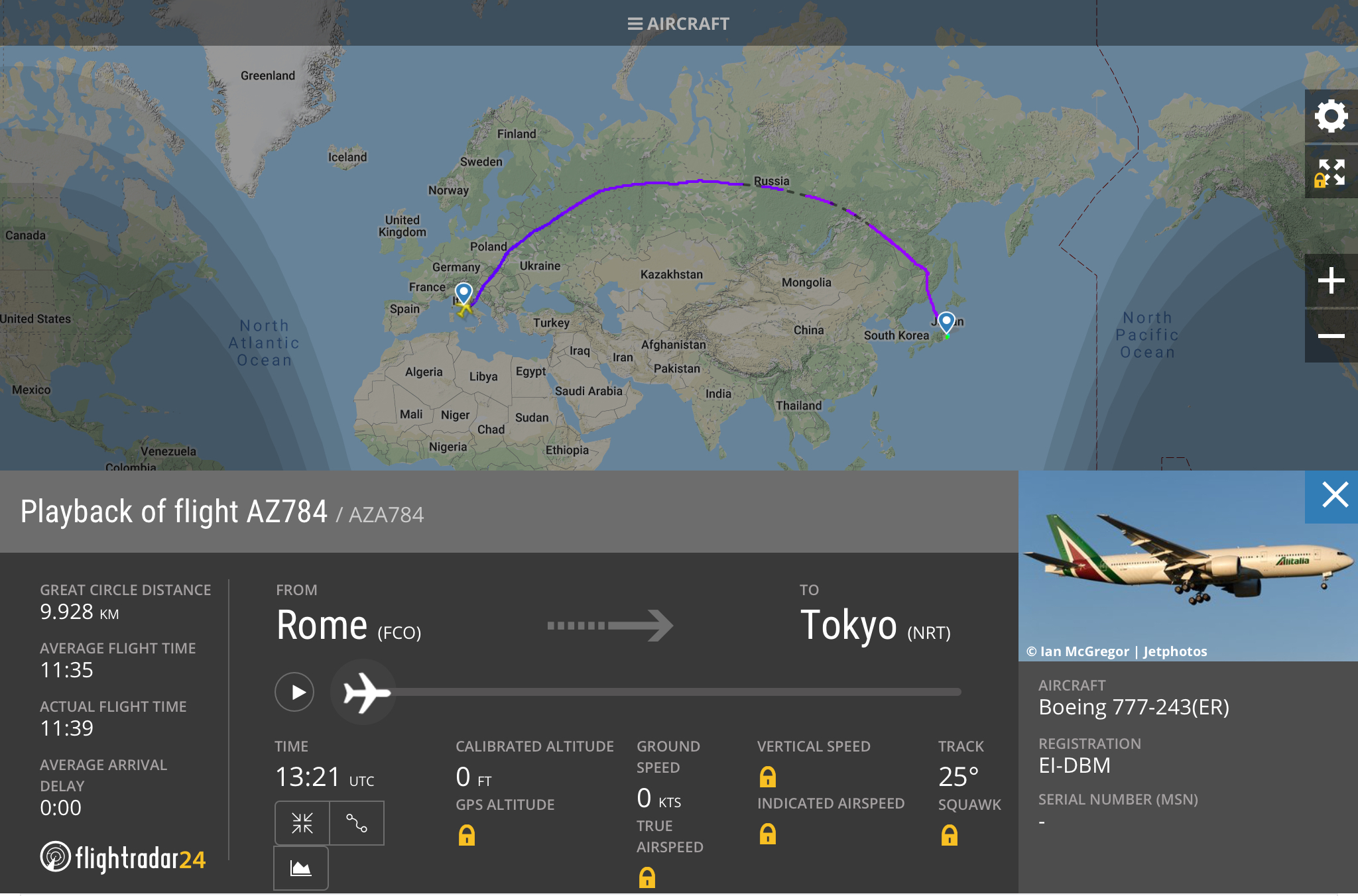 Il fatto, e’ accaduto a venti minuti dall’atterraggio. Sul volo AZ784 operato dal B777-243ER EI-DBM, aveva 242 passeggeri e 14 crew come riporta la fonte :