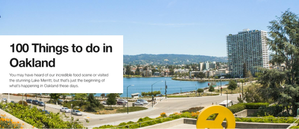 Potresti aver sentito parlare della incredibile scena del cibo o visitato il meraviglioso Lago Merritt, ma questo è solo l’inizio di quello che sta succedendo ad Oakland in questi giorni. Cerca di conquistare tutte le 100 cose da fare.