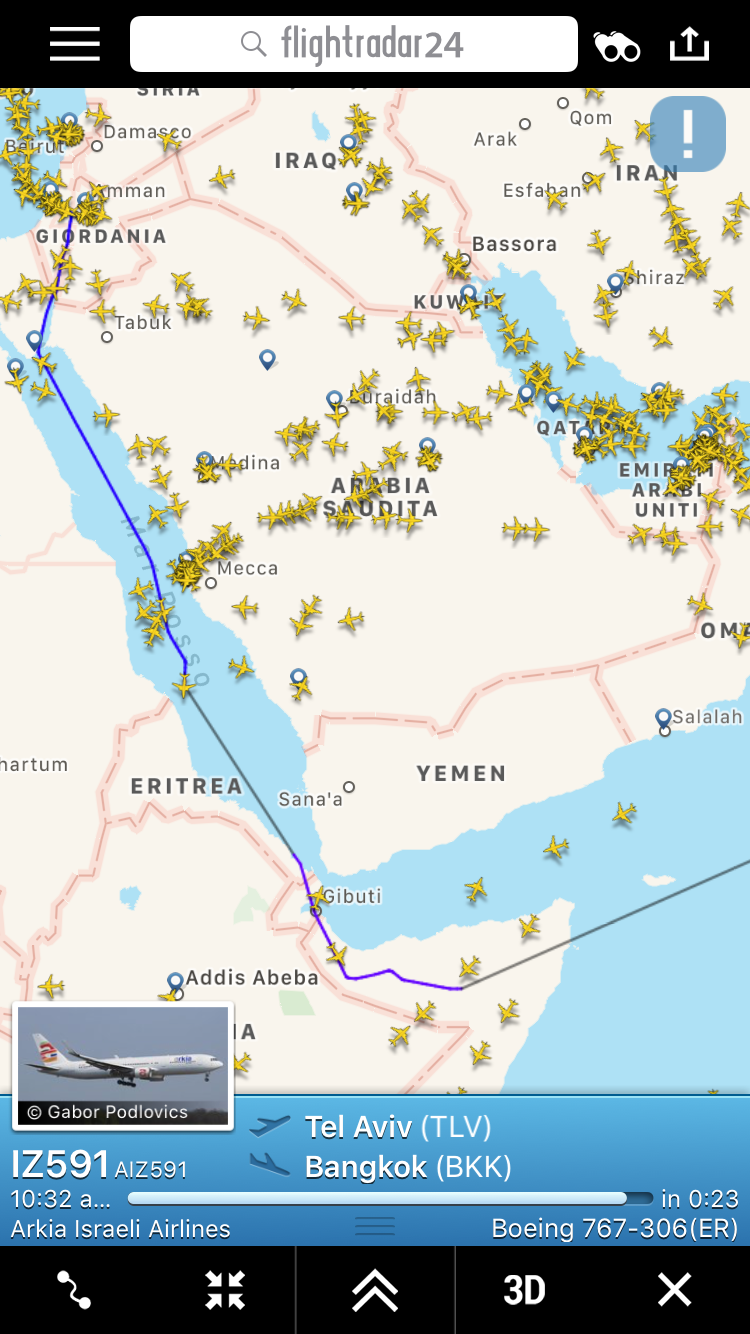 Invece si vola dopo il decollo verso sud, poi nel braccio di mare tra Egitto ed Arabia Saudita. Tutto il Mar Rosso a cavallo tra i due Paesi e poi il Sudan. Quasi alla fine entra in Eritrea poi Gibuti e la Somalia. A seguire l’Oceano Indiano, India e quindi il Golfo del Bengala, Myanmar e quindi la Thailandia.