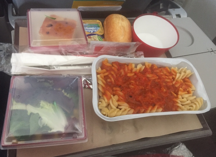 Quindi un sandwich discreto e poi ad un ora dall’atterraggio un box con biscotti, yoghurt, panino e wafer al cioccolato.