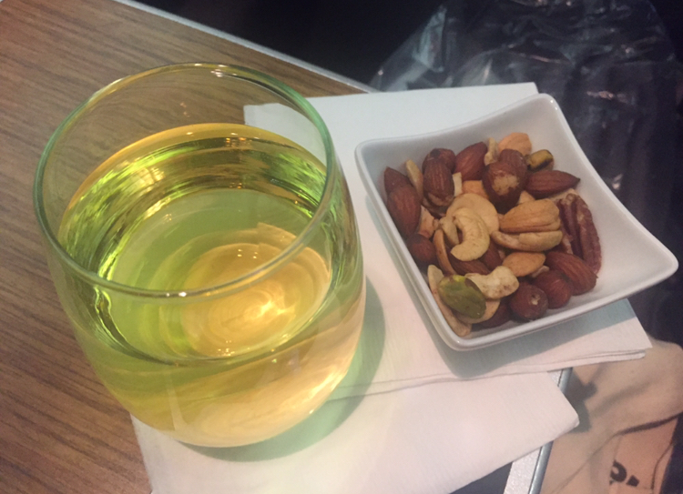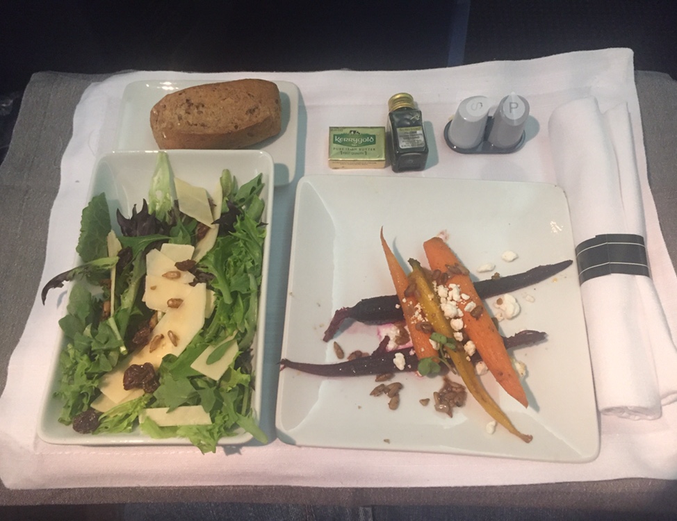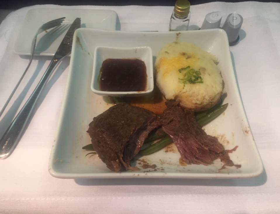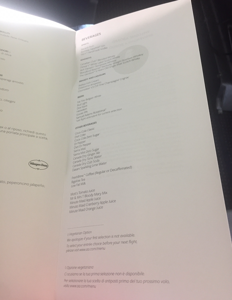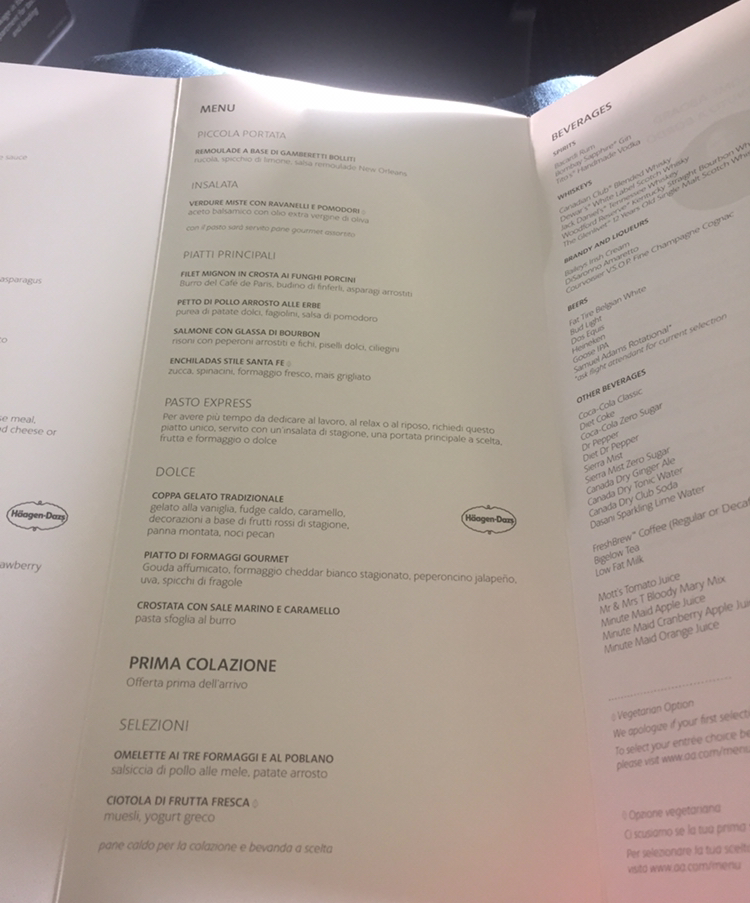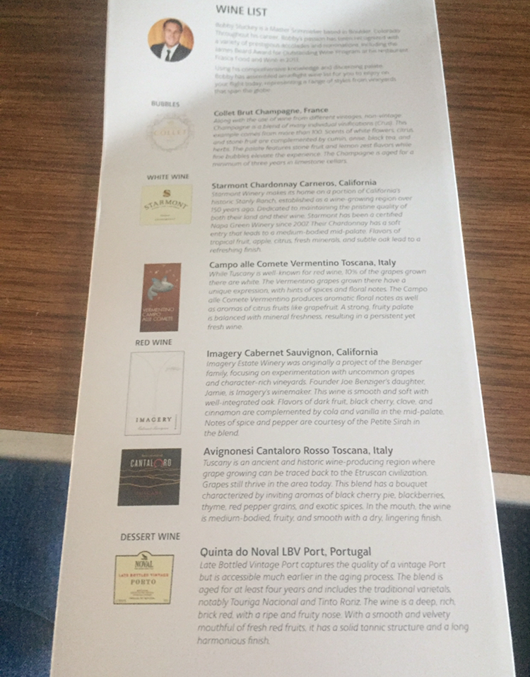 La ristorazione e’ discreta, in linea con i prodotti americani, ma comunque in crescita rispetto al passato. La cantina e’ formata da vini californiani, italiani, francesi. Comunque di taglio decisamente molto per gli americani. A bordo il volo era pieno in questa Flagship con ventisette posti occupati su 27. Uno e’ utilizzato come crew rest per i piloti. Ma selezionando le origini al 90% erano clienti americani.