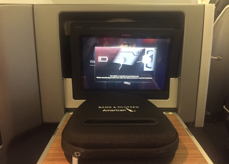 Il prodotto e’ chiaramente indirizzato ad una clientela americana. L’hardware e’ buono, American non investirà in futuro più di tanto perché l’aereo e’ destinato presto al phase out. E’ comunque in generale di Buon comfort. La disposizione 1-2-1 sfalsata e’ vincente. Quando reclinata totalmente la seduta garantisce un buon riposo grazie anche alla buona qualità della trapunta. L’IFE e’ costituito da un tablet Samsung che viene installato dopo il decollo e ritirato prima dell’atterraggio. America fornisce anche cuffie noise cancellino della nota Bang & Olufsen. I contenuti possono essere prelevati in Wi-Fi e visti sul vostro computer portatile, tablet e cellulare.