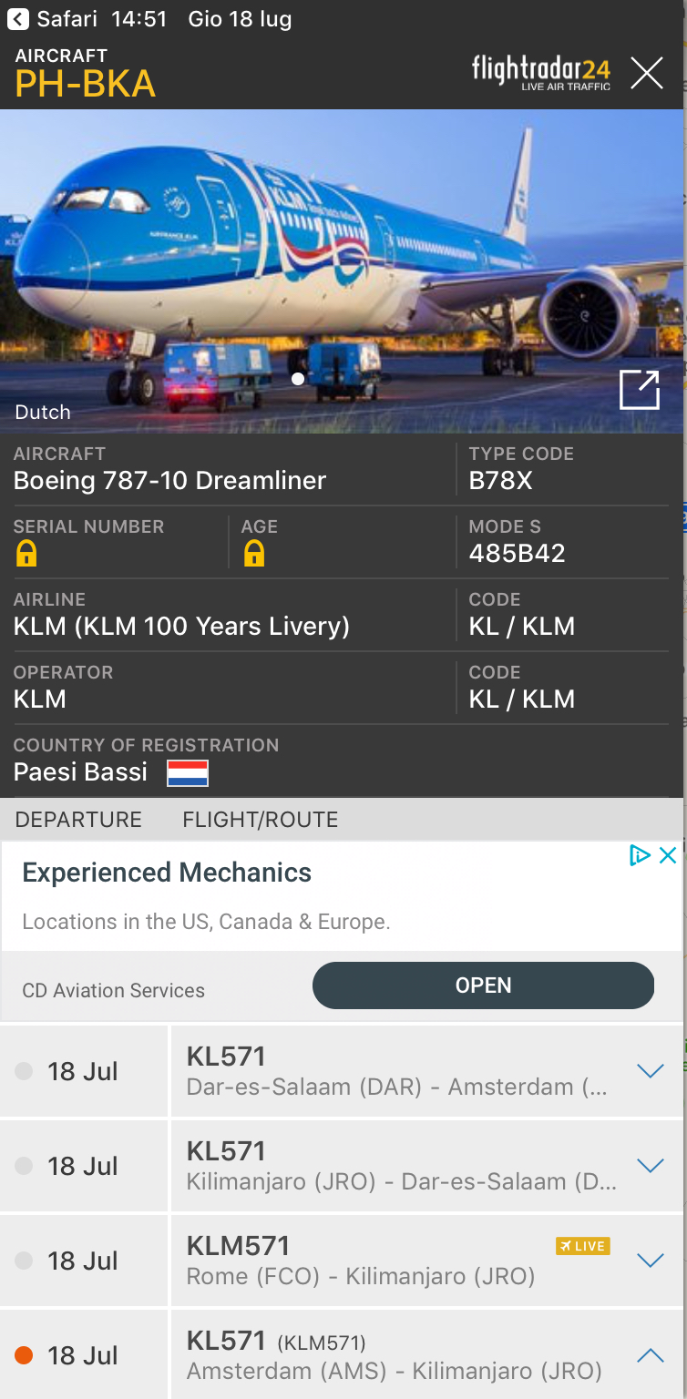 A sorpresa, poco dopo le 13 a #Roma #Fiumicino sulla pista 16R e’ atterrato il Boeing 787-10 #KLM 100th Anniversary Orange Bloessom. L’aereo volava tra #Amsterdam e #Kilimanjaro in Tanzania, ma un emergenza ha spinto l’equipaggio che sorvolava la Basilicata orientale ad invertire la rotta per Fiumicino. Tante grazie a MA per la segnalazione. #KLM100 #100thanniversary
