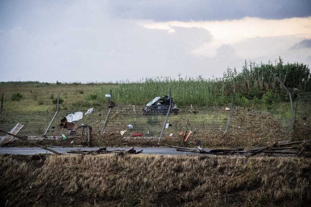 I danni sono stati tali che la recinzione aeroportuale e’ stata divelta, l’auto di Noemi come si vede nell’immagine di MeteOne Italia e’ oltre, all’interno dello scalo aeroportuale.