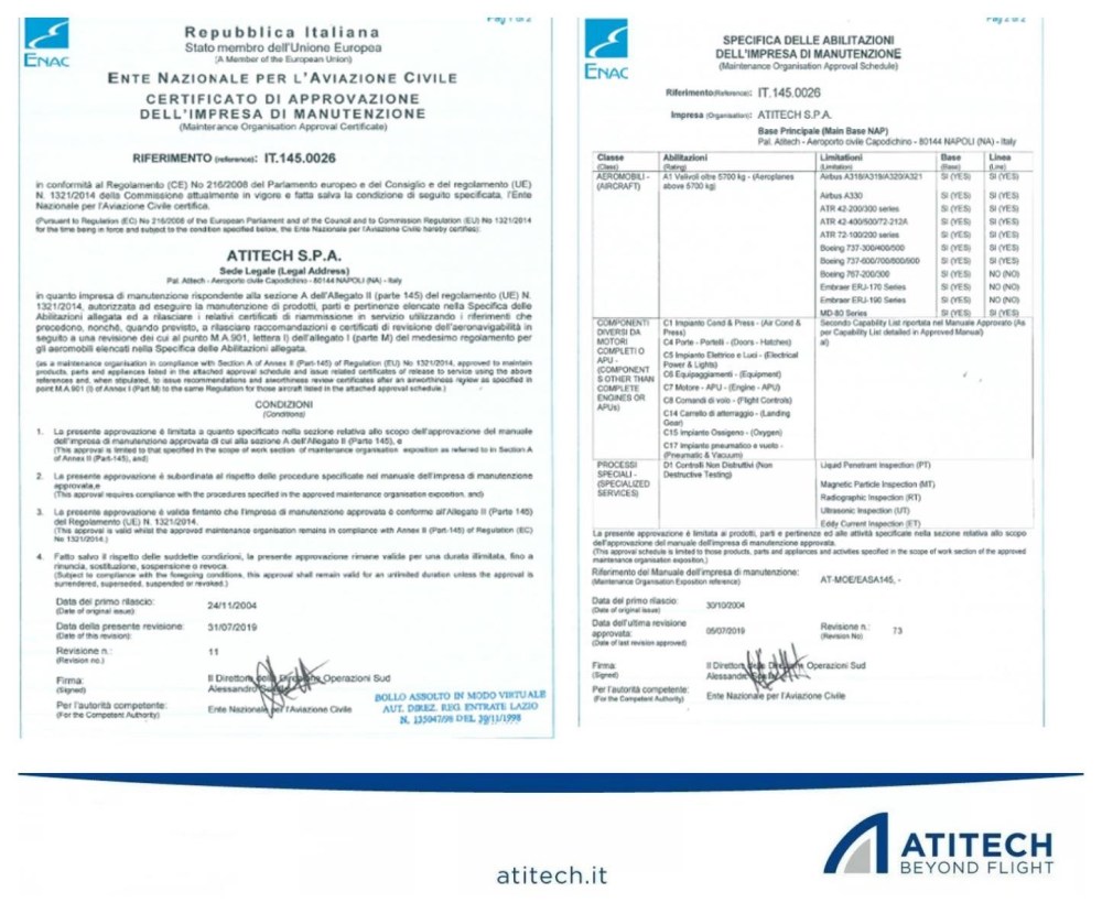 ENAC ha esteso alla Atitech la capability list per le attività di base maintenance anche all’Airbus 330.