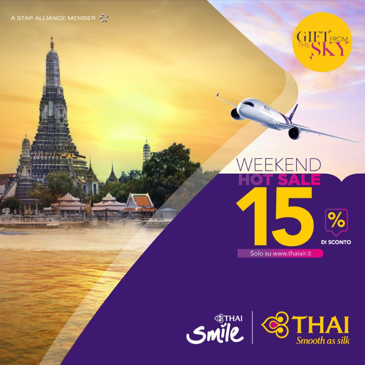 compagnie aeree, vola e paga poco Thai Airways : Business class in sconto fino a domani sera Pubblicato da Italiavola il 11 agosto 2019 Ci sono ancora quasi 36 ore per approfittare dello sconto del 15% sulla tariffe di business Class sui voli Thai Airways. JOYFUL15 e’ il codice. Le partenze valide da ora al 30 settembre 2019. Condividi: Fai clic per condividere su Facebook (Si apre in una nuova finestra) Facebook Fai clic qui per condividere su LinkedIn (Si apre in una nuova finestra) LinkedIn Fai clic qui per condividere su Reddit (Si apre in una nuova finestra) Reddit Fai clic qui per condividere su Pinterest (Si apre in una nuova finestra) Pinterest Fai clic qui per condividere su Tumblr (Si apre in una nuova finestra) Tumblr Fai clic per condividere su X (Si apre in una nuova finestra) X Mi piace Caricamento... Correlati