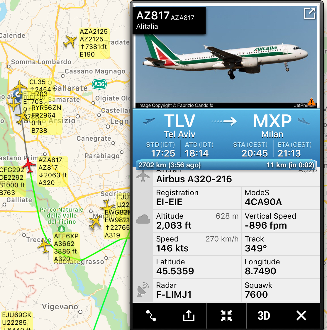 compagnie aeree, rotte Alitalia : problemi radio al volo Tel Aviv – Milano Malpensa Pubblicato da Italiavola il 20 agosto 2019 In finale all’aeroporto di Milano Malpensa il volo AZ817 da Tel Aviv ha inserito 7600 sul transponder segnalando con questa azione un problema ai suoi sistemi di comunicazione. Il velivolo e’ l’A320-216 EI-EIE. Condividi: Fai clic per condividere su Facebook (Si apre in una nuova finestra) Facebook Fai clic qui per condividere su LinkedIn (Si apre in una nuova finestra) LinkedIn Fai clic qui per condividere su Reddit (Si apre in una nuova finestra) Reddit Fai clic qui per condividere su Pinterest (Si apre in una nuova finestra) Pinterest Fai clic qui per condividere su Tumblr (Si apre in una nuova finestra) Tumblr Fai clic per condividere su X (Si apre in una nuova finestra) X Mi piace Caricamento... Correlati
