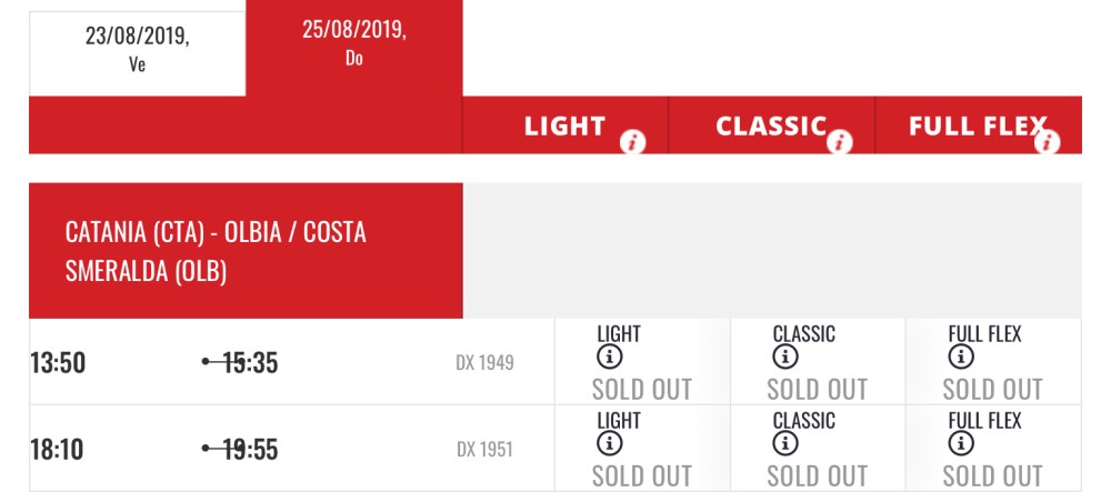 Sempre da Olbia a Catania ci sarà il doppio volo il 30 agosto e sarà tutto al completo fino al 9 settembre, data dell’ultima rotazione.