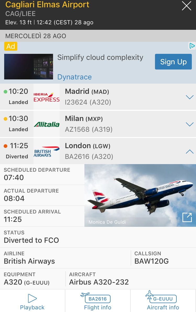 compagnie aeree, rotte Cagliari : maltempo crea dirottamento. Volo British Airways su Roma Pubblicato da Italiavola il 28 agosto 2019 Il volo British Airways da Londra Gatwick per Cagliari ha dirottato a Roma Fiumicino a causa di un temporale molto forte abbattutosi sulla zona dell’aeroporto. Condividi: Fai clic per condividere su Facebook (Si apre in una nuova finestra) Facebook Fai clic qui per condividere su LinkedIn (Si apre in una nuova finestra) LinkedIn Fai clic qui per condividere su Reddit (Si apre in una nuova finestra) Reddit Fai clic qui per condividere su Pinterest (Si apre in una nuova finestra) Pinterest Fai clic qui per condividere su Tumblr (Si apre in una nuova finestra) Tumblr Fai clic per condividere su X (Si apre in una nuova finestra) X Mi piace Caricamento... Correlati