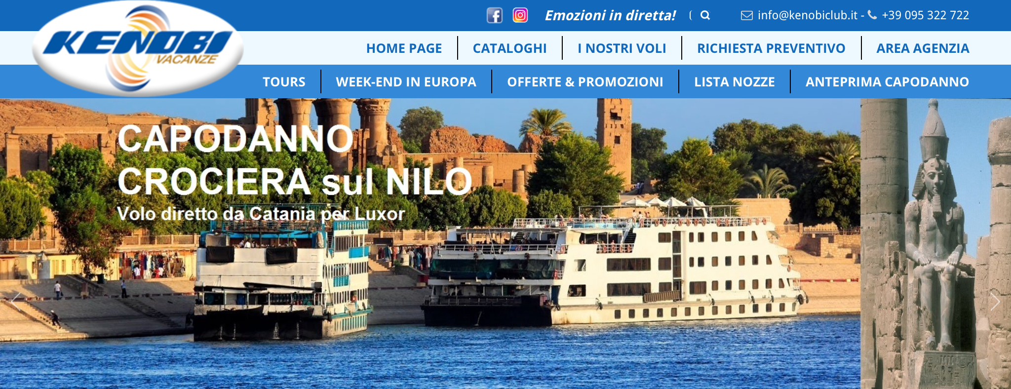 E’ Almasria, la compagnia che opererà per conto di Kenobi Travel un volo di andata il 30 dicembre da Catania su Luxor con ritorno il 6 gennaio. Il viaggio sarà a bordo della m/n Hali a 5 stelle. Prezzi da 1690€ a persona. Se prenoti entro il 19/10 cenone di capodanno e escursione ad Abu Simbel gratis.