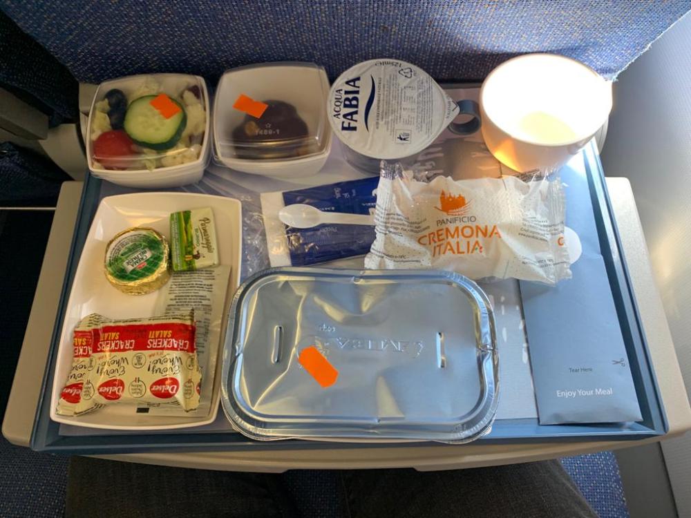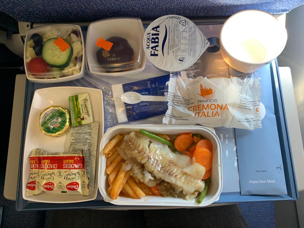 Il menu ed il pasto in economica.pPiatto principale con verdure, poi ancora verdure e dolce. Oltre a formaggino, burro ed etc. Insomma non negli standard europei.