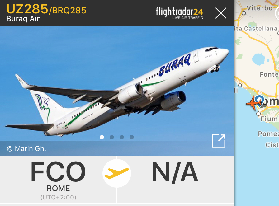 compagnie aeree Buraq Air : volo su Roma da e per Misurata Pubblicato da Italiavola il 13 settembre 201913 settembre 2019 Nel tardo pomeriggio a Roma e’ arrivato questo B737/8GK 5A-DMG da Misurata. E’ ripartito da pochi minuti. Era da molto tempo che in Italia non arrivava un volo dalla Libia. Condividi: Fai clic per condividere su Facebook (Si apre in una nuova finestra) Facebook Fai clic qui per condividere su LinkedIn (Si apre in una nuova finestra) LinkedIn Fai clic qui per condividere su Reddit (Si apre in una nuova finestra) Reddit Fai clic qui per condividere su Pinterest (Si apre in una nuova finestra) Pinterest Fai clic qui per condividere su Tumblr (Si apre in una nuova finestra) Tumblr Fai clic per condividere su X (Si apre in una nuova finestra) X Mi piace Caricamento... Correlati