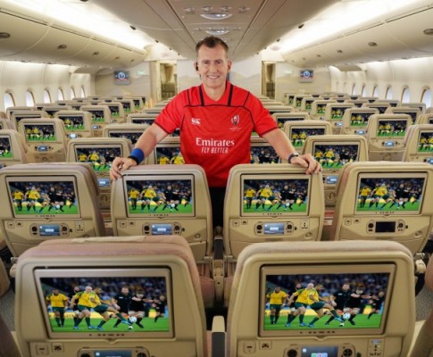 Il celebre direttore di gara, protagonista di una serie di brevi videoclip, sanziona i casi di scarso “fair play” durante il volo. Emirates lancia la sua nuova campagna oggi, in occasione dell’inizio del mondiale di rugby in Giappone