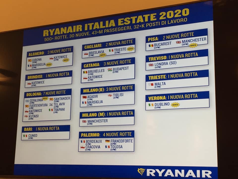 L’arrivo di Eddie Wilson in Italia ha portato da Dublino la notizia di sette nuove rotte che saranno attivate da cinque aeroporti italiani per l’estate 2019. In più la riconferma di altre 24 da 13 aeroporti. In totale sono 31 i collegamenti in più rispetto all’estate 2019.