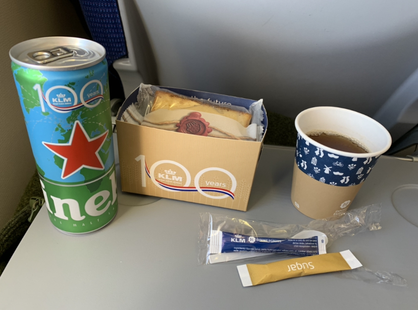 A bordo degli aerei di KLM Si respira l’orgoglio olandese dei suoi 100 anni con piccole idee personalizzazioni.